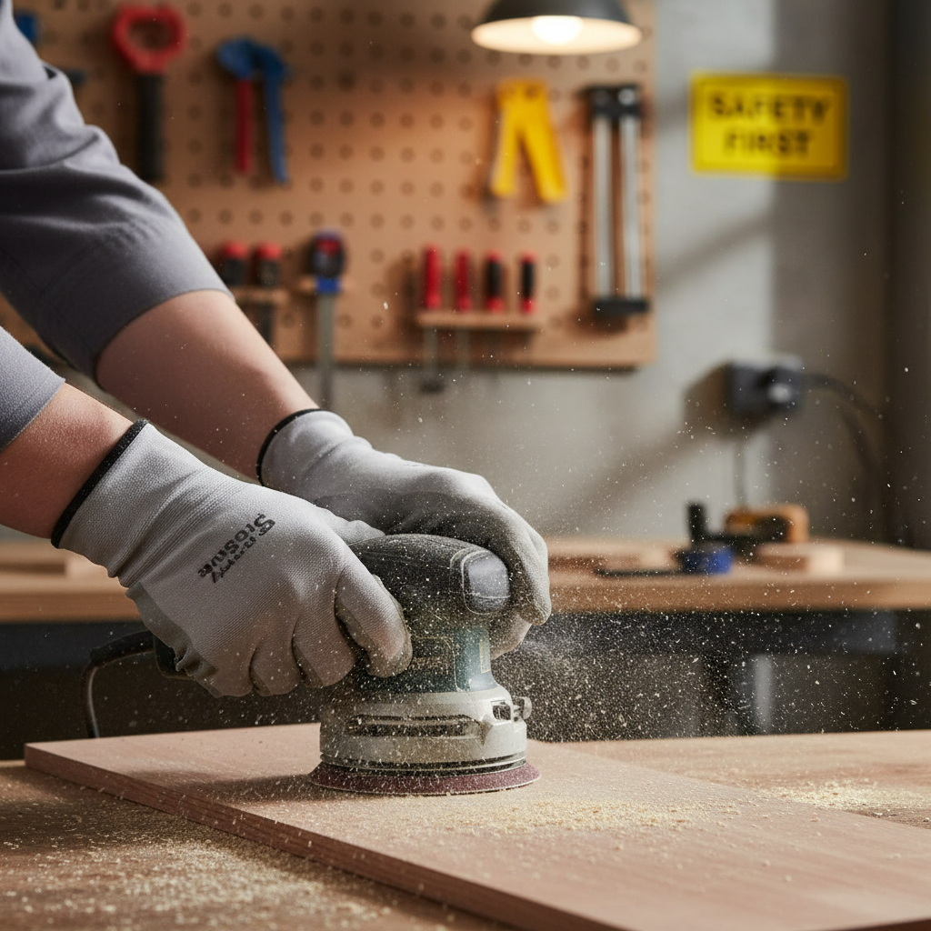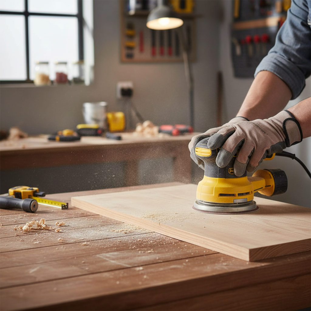 - Punched sanding pads for efficient dust collection