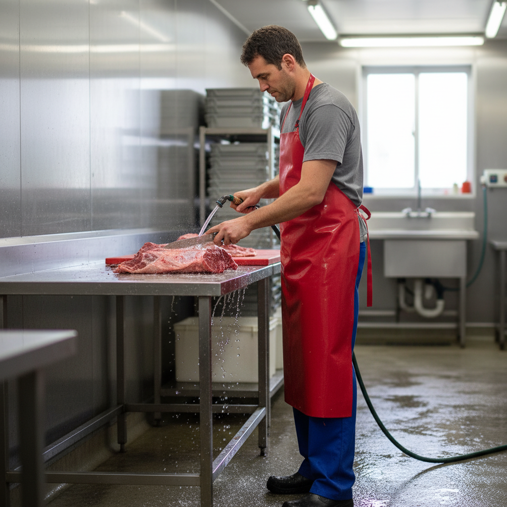 Engineered for resilience, this apron boasts excellent tensile strength and is specifically resistant to animal fats and common cleaning agents, enhancing its longevity and effectiveness in maintaining workplace hygiene and safety.