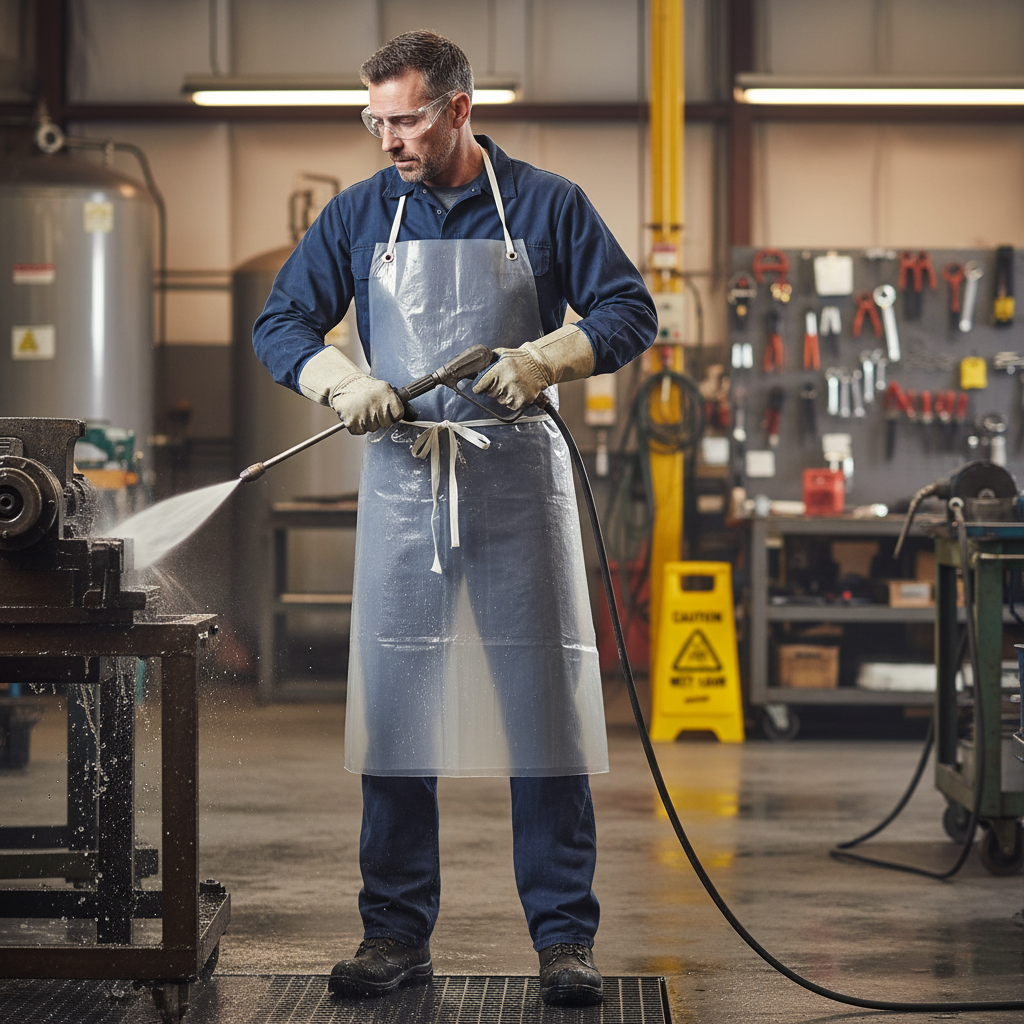 The clear PVC material makes these aprons easy to clean, ensuring hygiene for repeated use.