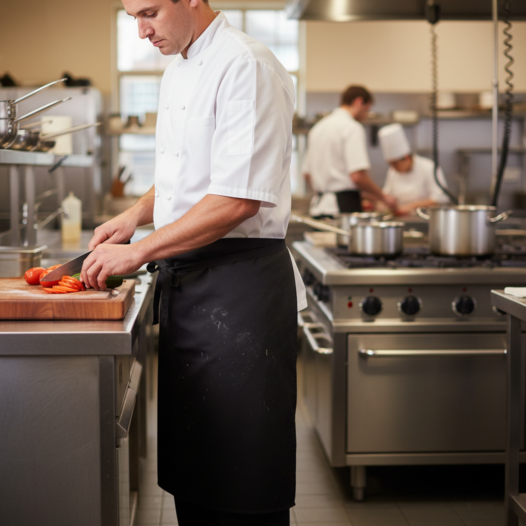 This apron is designed to withstand the rigors of a professional kitchen while maintaining comfort and style. The anti-tangle ties ensure a secure fit, allowing you to focus on your culinary creations without distractions.