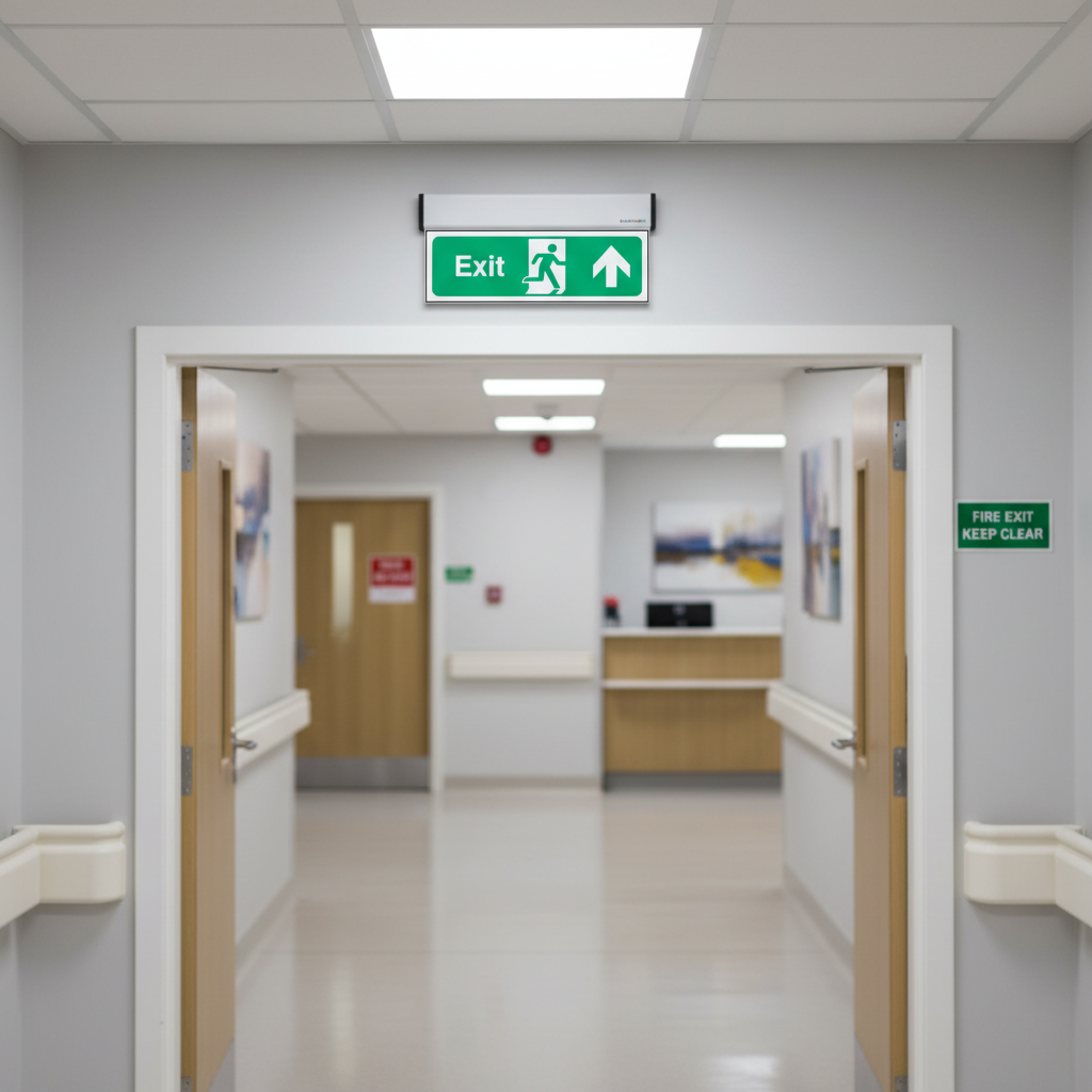 The Premium Fire Safety Exit Sign is available in various materials to suit different environments. It typically comes in a green and white color scheme, ensuring high visibility and compliance with safety regulations.