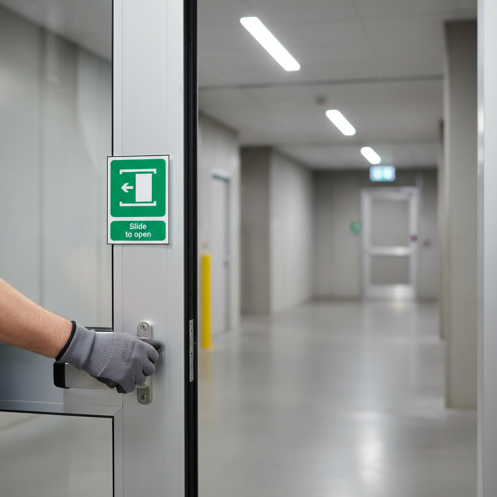 The Premium Slide to Open Left Arrow Sign is an essential addition to any safety protocol, ensuring swift evacuation routes are clearly marked during emergencies. This sign directs individuals to slide doors or access points, facilitating a quick and safe exit from buildings.