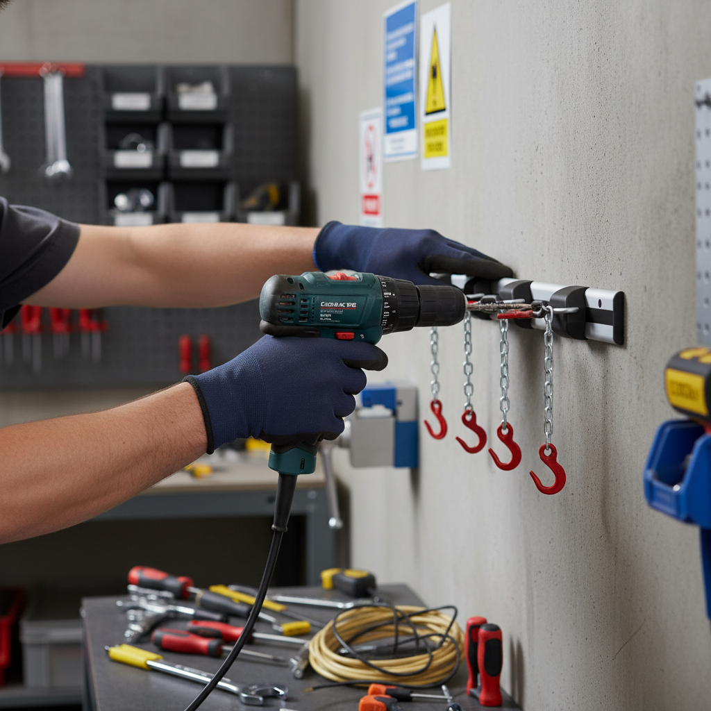 This wall-mounted system is the ideal solution for maximizing space, ensuring that your tools and equipment are easily accessible and securely stored.