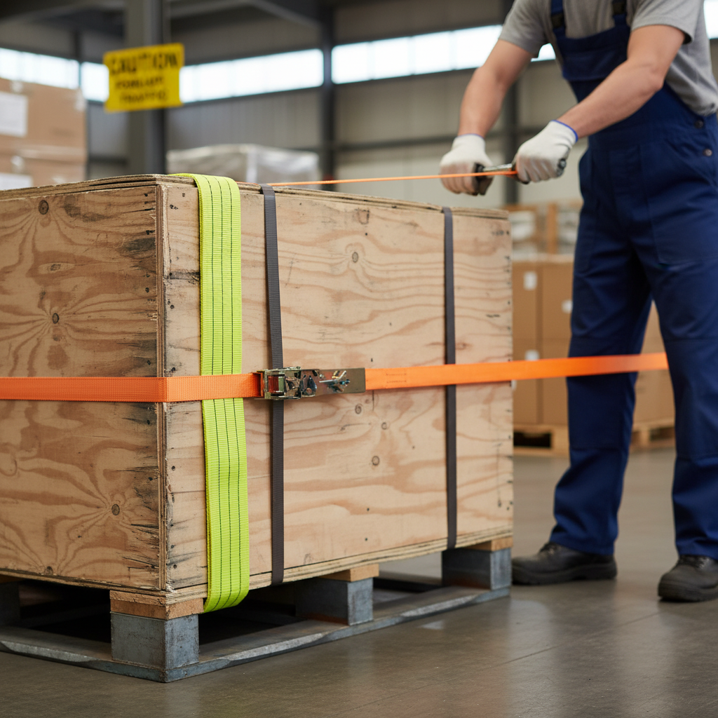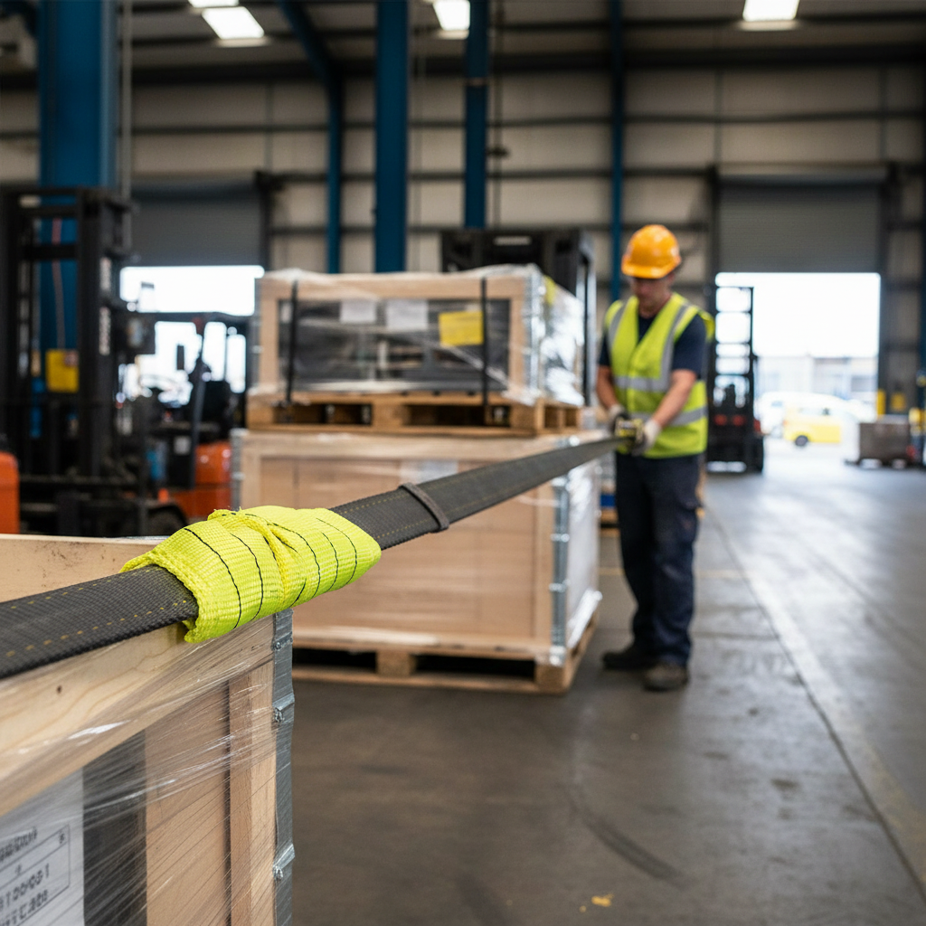 The wear sleeve is designed to fit over the webbing of the ratchet strap, preventing direct contact with abrasive surfaces and extending its lifespan.