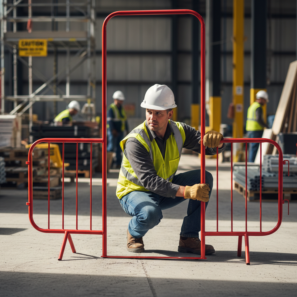 The Premium Walkthrough Barrier is designed to create a secure entryway for pedestrian traffic when used alongside crowd control barriers. These barriers feature a striking red powder-coated finish, ensuring they are highly visible and effective in managing crowds.