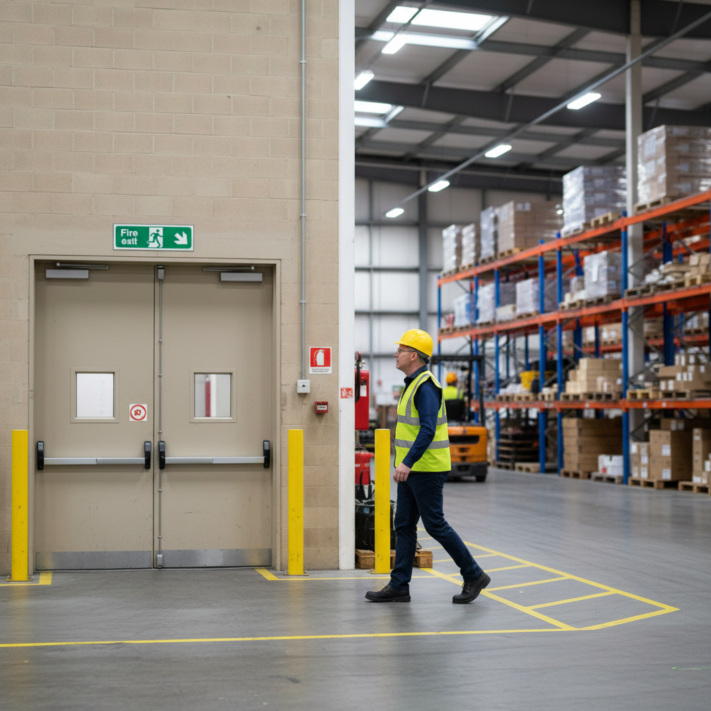 These signs are universally applicable and can be installed in various locations such as hotels, warehouses, apartment blocks, kitchens, and laboratories. Its vibrant green and white colors ensure high visibility in all conditions.