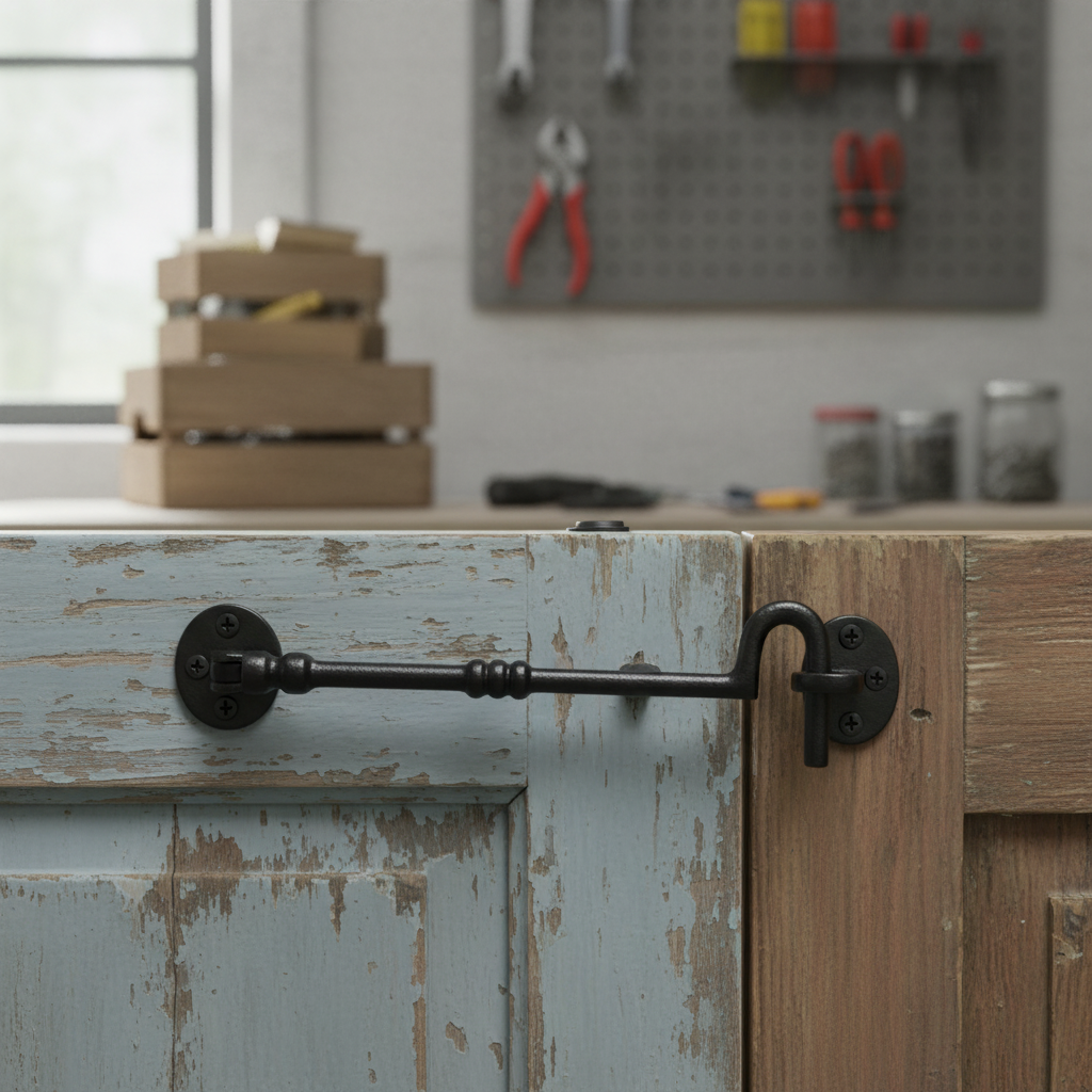 The simple yet effective design allows for easy operation while maintaining security. The traditional hook and eye mechanism offers tried-and-tested reliability, ensuring the latch serves your everyday securing needs with ease.