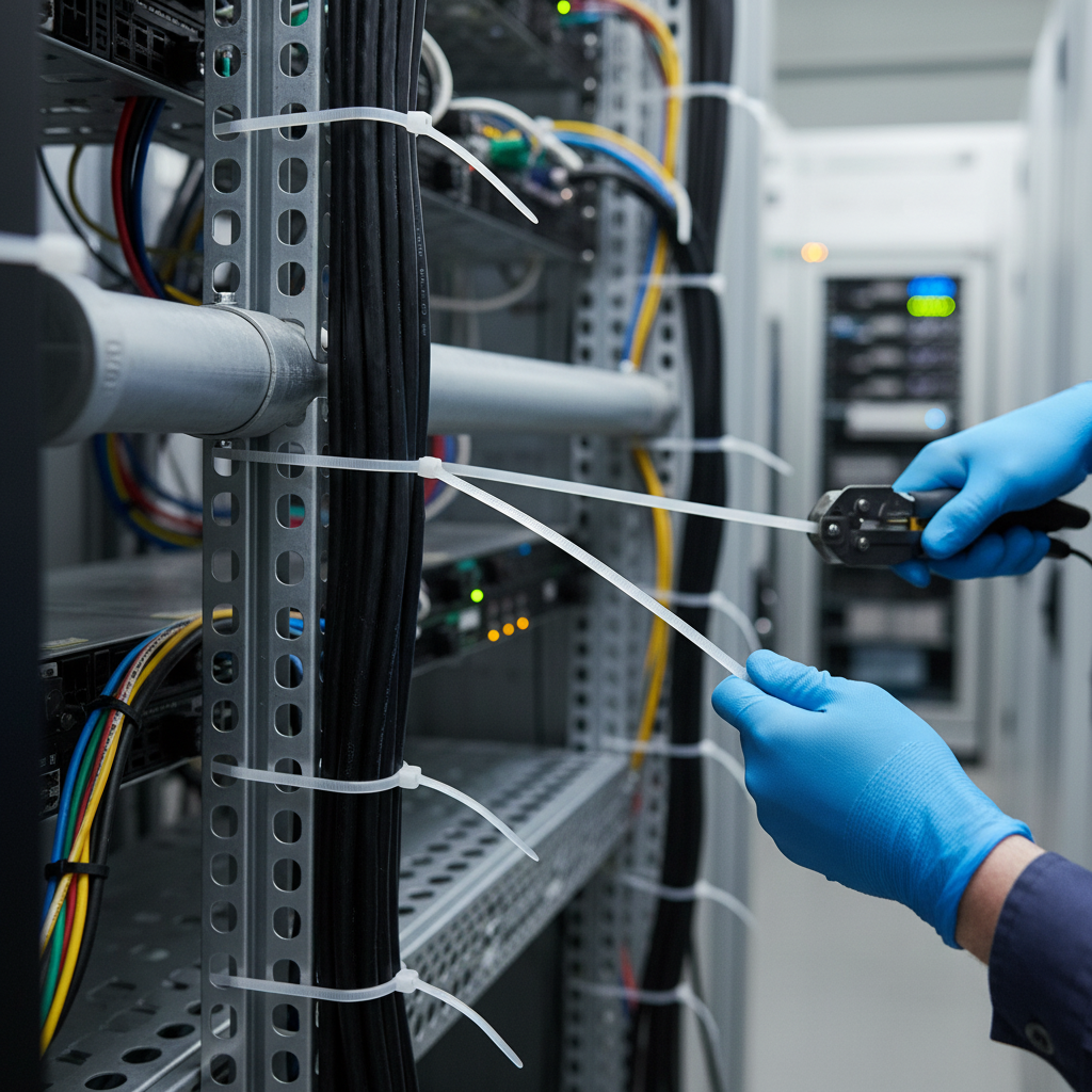 Discover reliable heavy-duty white nylon cable ties measuring 800mm in length and 7.6mm in width. These robust cable ties offer easy fastening, making them perfect for securing cables, tarps, barrier fencing, and debris netting. Crafted from durable nylon 66, these cable ties boast heat resistance, ensuring long-lasting performance in various applications.