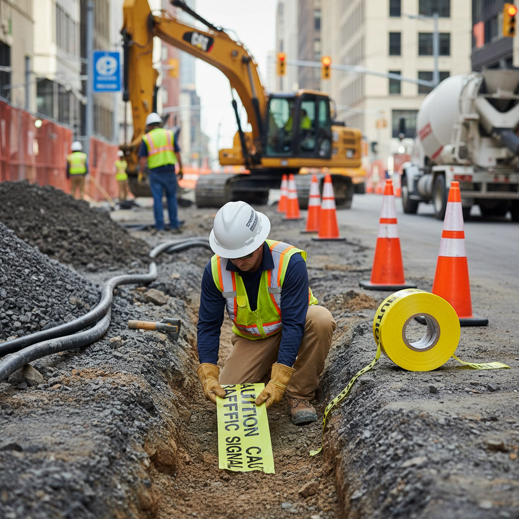 This tape is primarily used for marking underground utilities such as traffic signal cables. -