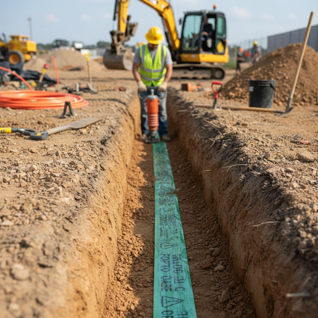 This Premium Underground Warning Tape is designed to provide clear warnings for underground fibre optic cables. Highly visible in bright green, this tape ensures safety and awareness in construction and excavation sites.