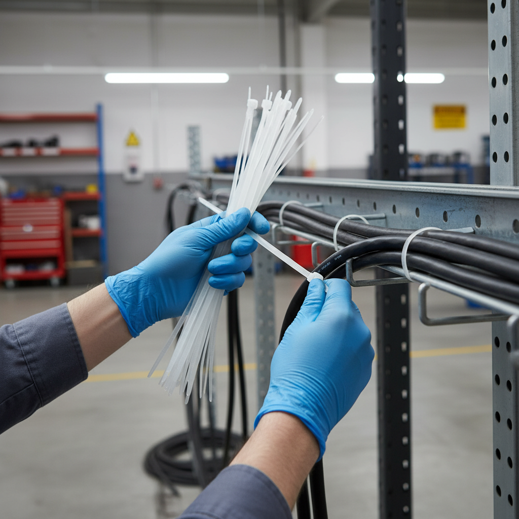 These heavy-duty white cable ties, measuring 300mm in length and 7.6mm in width, offer secure fastening for various applications such as securing cables, tarps, barrier fencing, and debris netting. Crafted from robust nylon 66 material, they boast exceptional heat resistance, ensuring durability even in demanding environments. With their easy-to-use design, these cable ties provide a reliable solution for bundling and organizing items effectively.