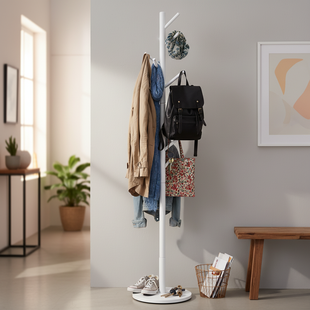 Introducing our Premium Wooden Coat Stand with Round Base – the ideal solution for organizing your coats and accessories. This coat stand is designed for easy assembly and features customizable heights to suit your needs. Crafted from sustainably sourced wood, it offers strength, durability, and requires no tools for setup.