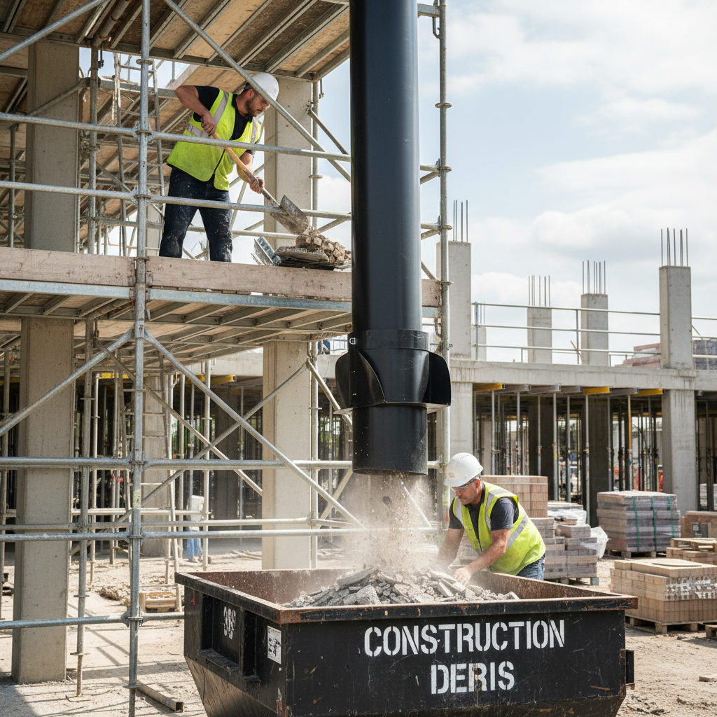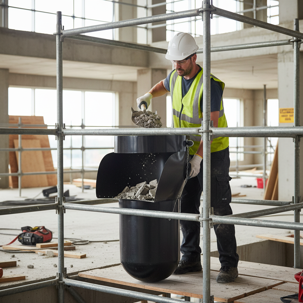 The 30" Premium Side Entry Hopper Rubbish Scaffold Chute is designed to enhance waste disposal efficiency on construction sites. With a high visibility design and robust construction, this chute is an essential tool for any cleanup operation.