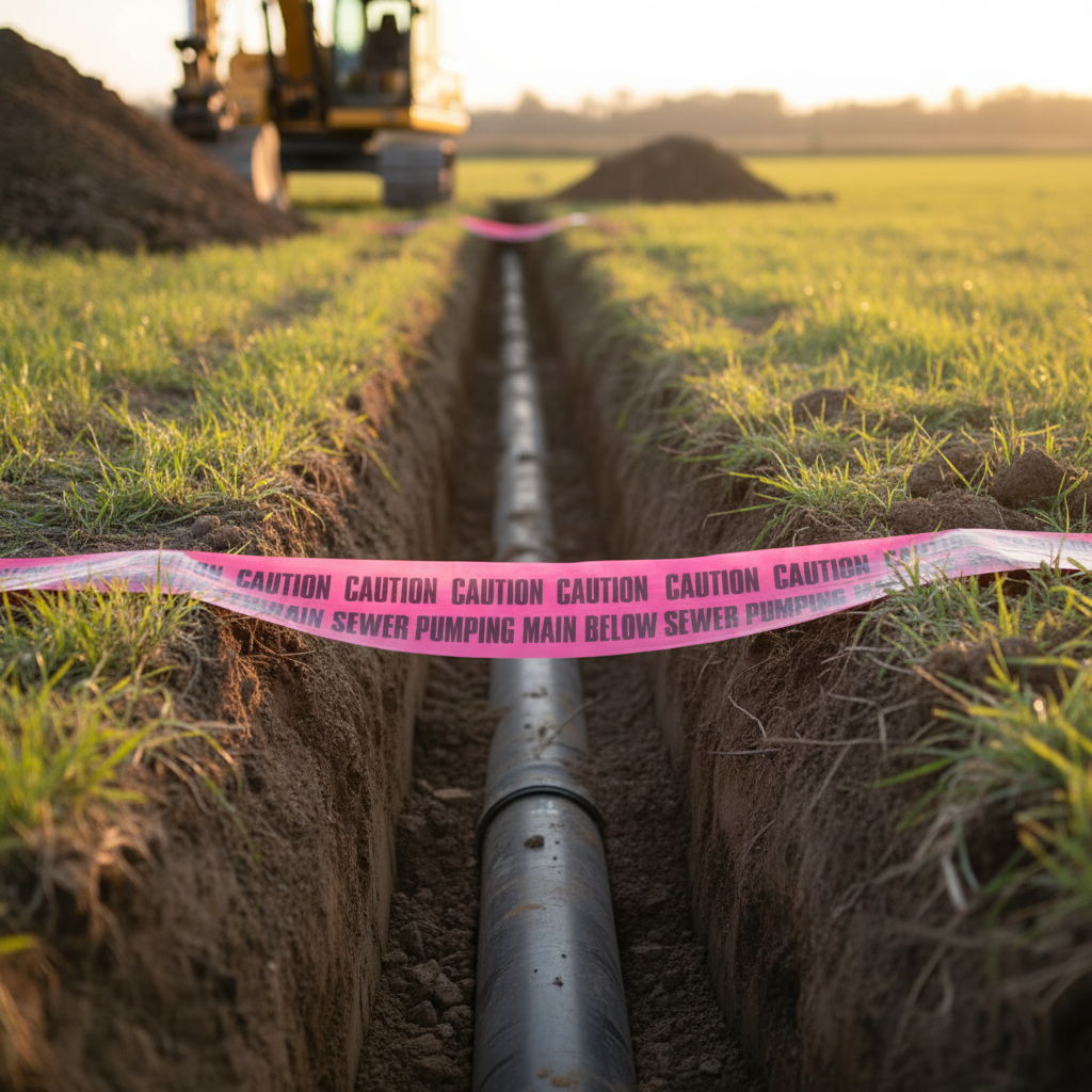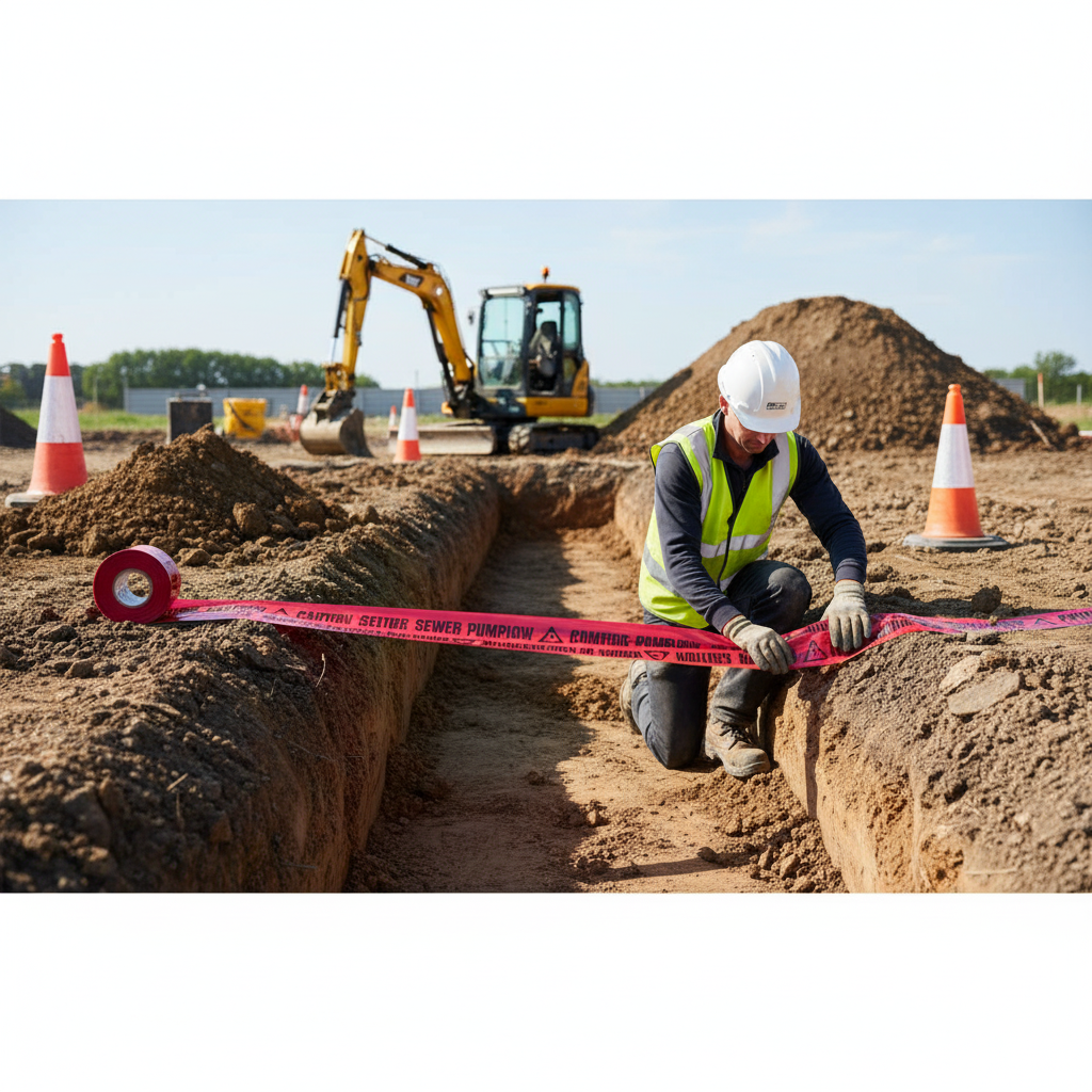 This high-performance detectable underground tape is essential for identifying underground pipes and services. Its bright red color ensures high visibility, making it an excellent warning marker during excavations.