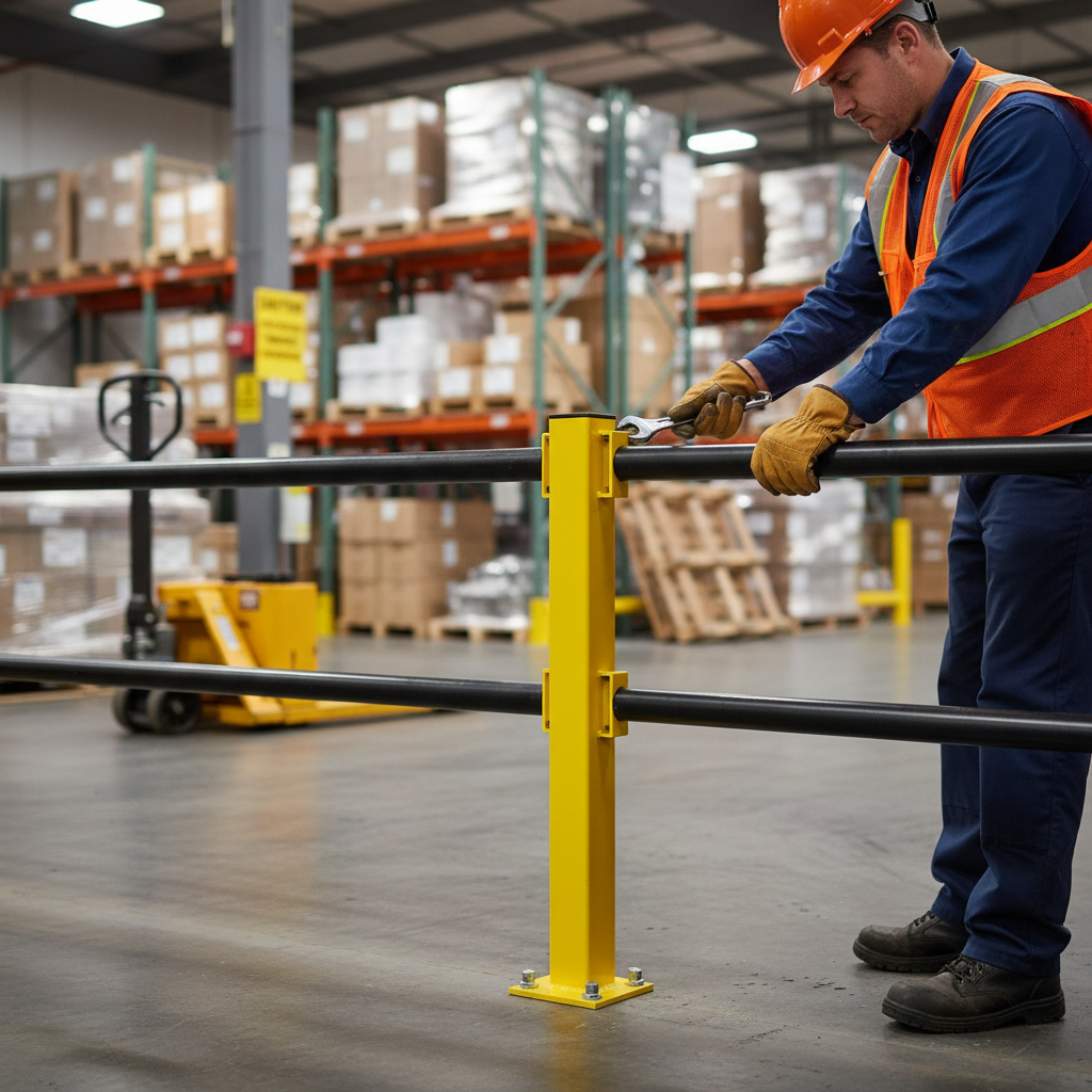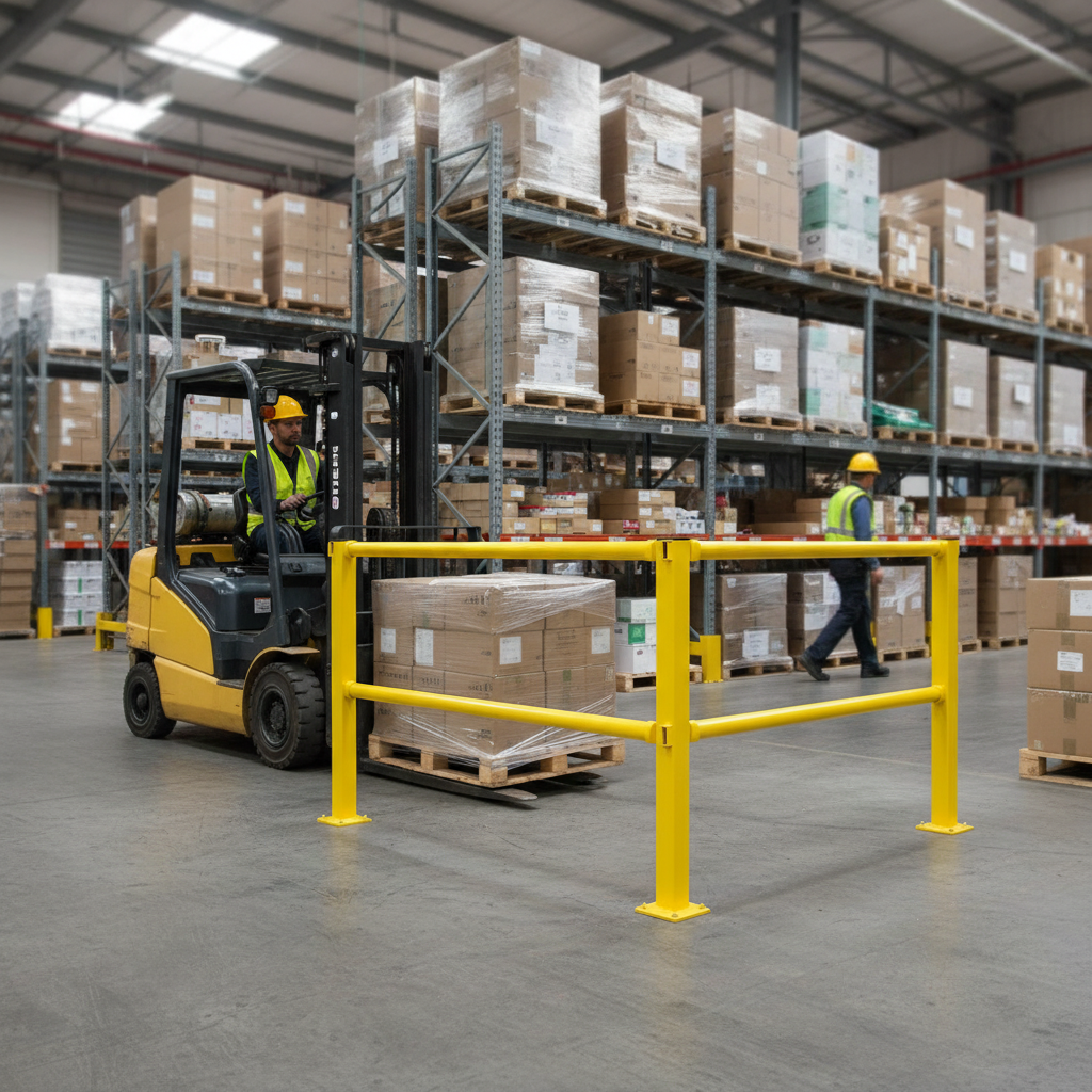 Introducing the Premium Medium Duty Railing System, designed to provide exceptional visibility and safety in both indoor and outdoor environments. This railing system effectively separates machinery from pedestrian walkways, ensuring safety in various settings.