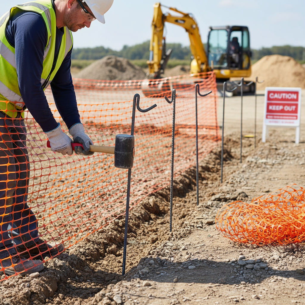 Our Heavy Duty Barrier Fencing Pins are expertly crafted from robust steel for superior durability. These pins are designed specifically to provide reliable support for barrier fencing and tape, making them an essential tool for effective site management and safety. With their shepherd crook style top, they offer a secure hold, ensuring that your fencing remains in place even under challenging conditions.
