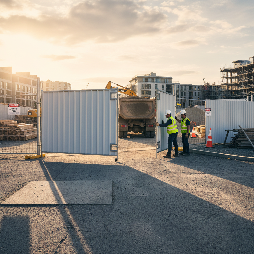 The Heavy Duty Steel Hoarding Vehicle Gate is designed to provide a secure and efficient access point for construction sites and events. With a generous 4 metre wide opening, this gate ensures ease of movement for vehicles while enhancing privacy and security.