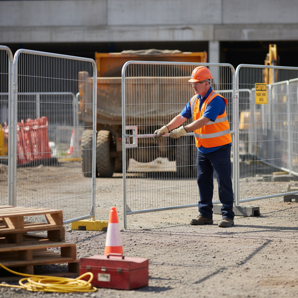 This heavy-duty temporary fencing vehicle gate is designed to provide secure and efficient vehicle access to construction sites. With a robust construction and customizable options, it is the ideal solution for managing site entry and maintaining security.
