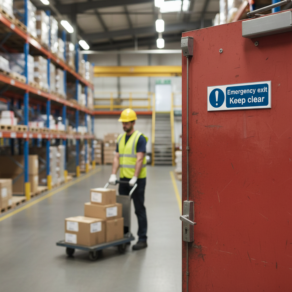 These signs can be placed on doors in hotels, warehouses, kitchens, and other facilities to ensure emergency exits are clear.