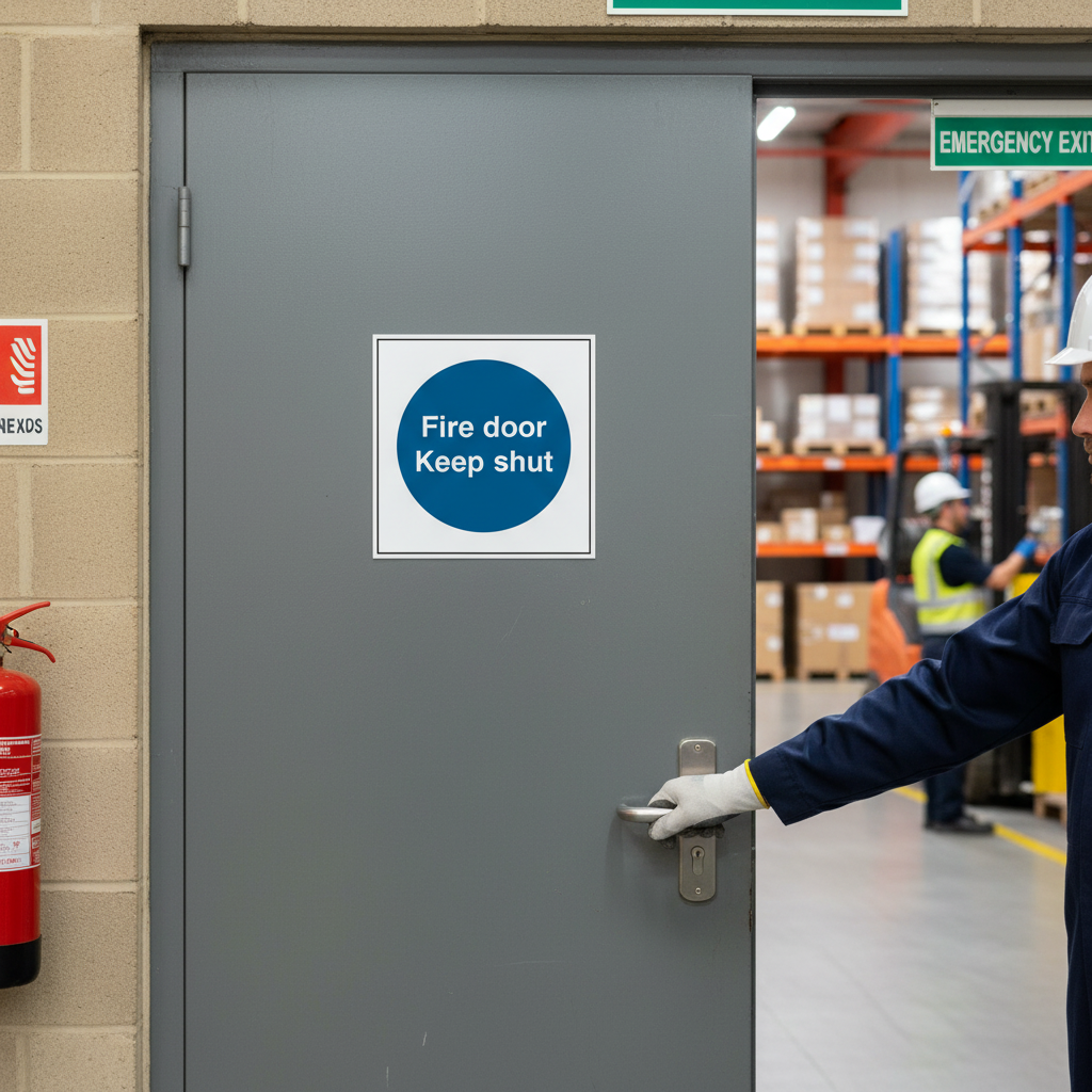 These signs are suitable for installation on the doors of hotels, warehouses, apartment blocks, kitchens, and labs, ensuring compliance with safety regulations.
