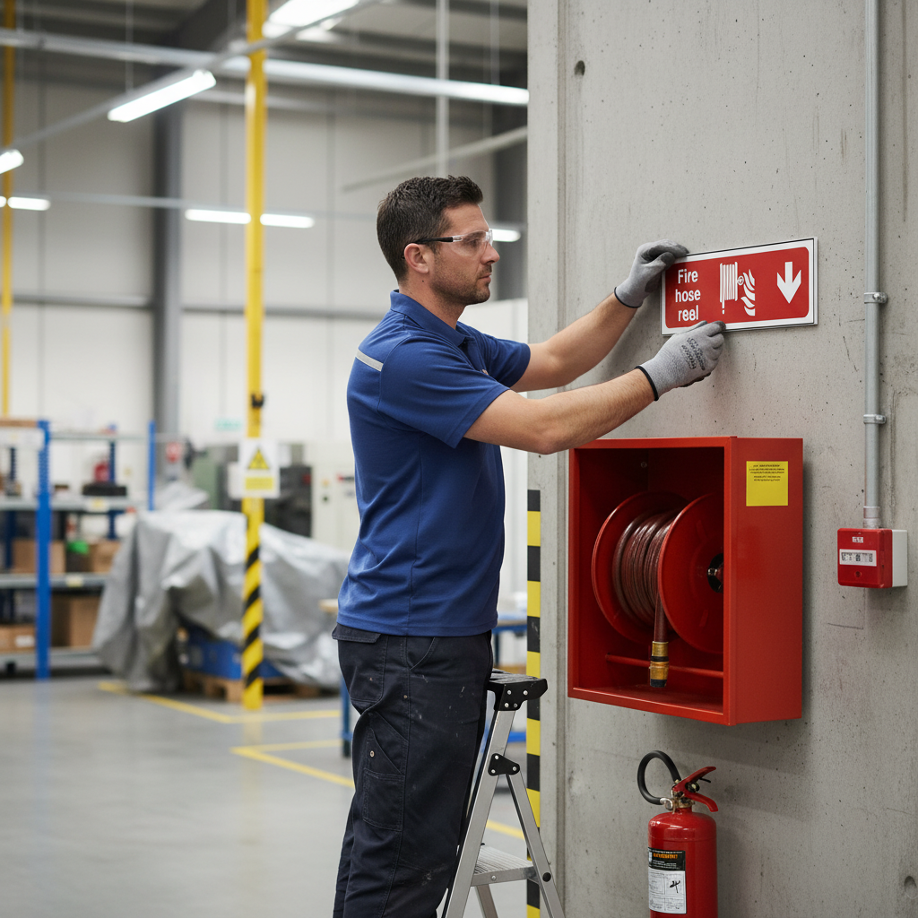 These signs can be installed in various locations including hotels, warehouses, and kitchens.