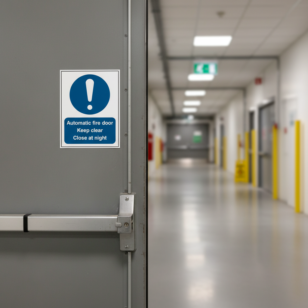 Ensure the safety of your facility with our Automatic Fire Door Keep Clear signs. These signs are essential for indicating fire safety rules and regulations, ensuring that automatic fire doors remain unobstructed, especially during night hours. They are suitable for a variety of applications including hotels, warehouses, apartment blocks, kitchens, and laboratories.