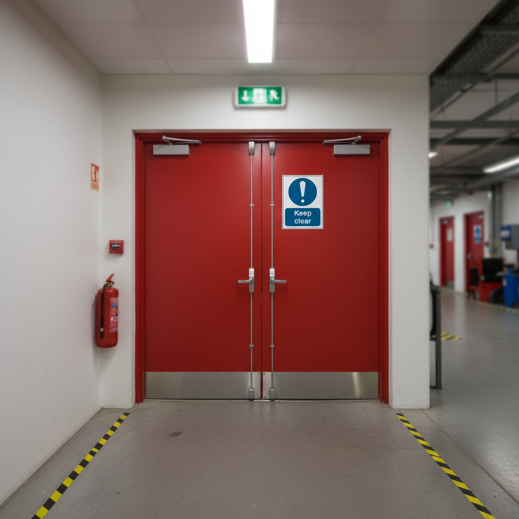 Mandatory Fire Safety Door Signs - Keep Clear for Safety Compliance