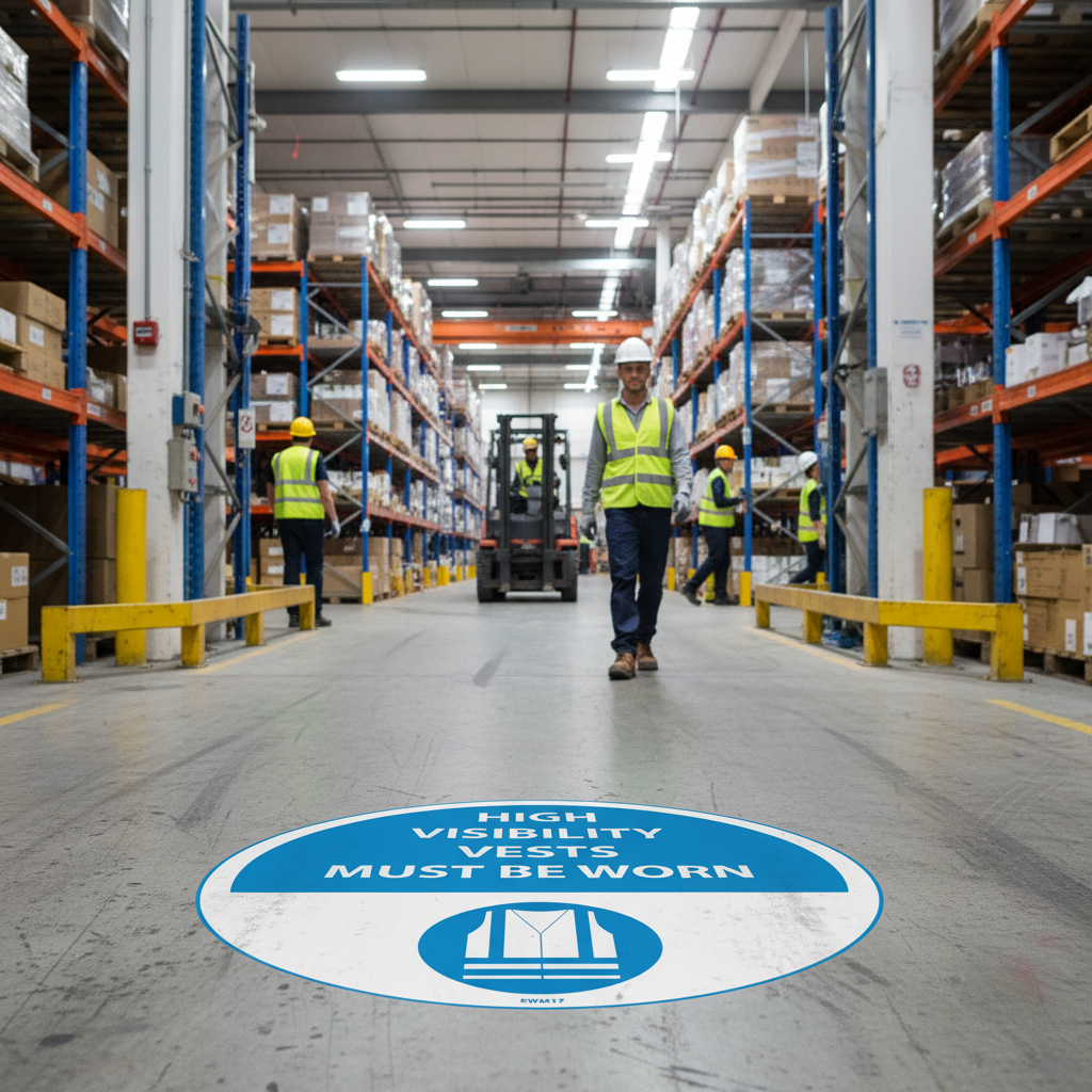 Featuring clear safety, warning, and instructional messages, this sign is essential for promoting safety protocols. The strong vinyl substrate, combined with an aggressive permanent self-adhesive backing, ensures a reliable application on smooth, clean surfaces.