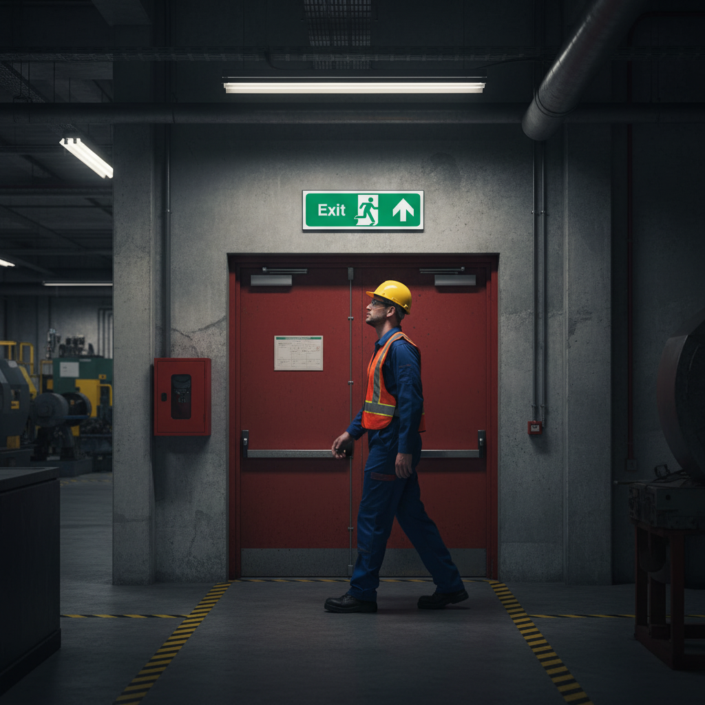 The sign can be installed in various locations such as hotels, warehouses, kitchens, and more, to ensure clear exit directions.