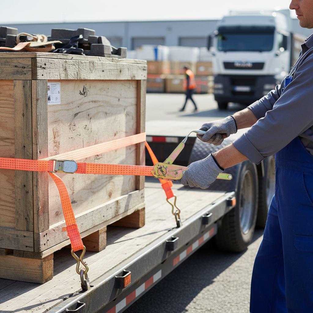 Introducing our robust Heavy Duty Ratchet Tie-down Straps, designed to handle demanding industrial environments. With a remarkable 5-tonne capacity, these straps are equipped with 50mm wide strong polyester webbing and claw hooks on both ends, ensuring secure and reliable load management.