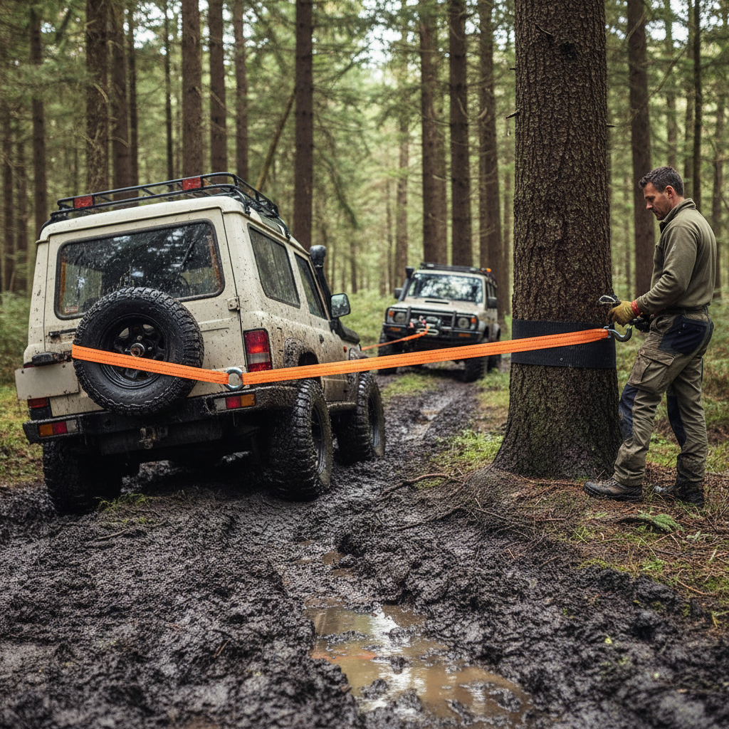 Crafted from high-quality polyester, the strap features a robust snap hook for secure attachment and a sewn loop on one end for easy fastening to winches. With a remarkable breaking strain of 3000kg, this strap is ideal for various towing and hauling applications.