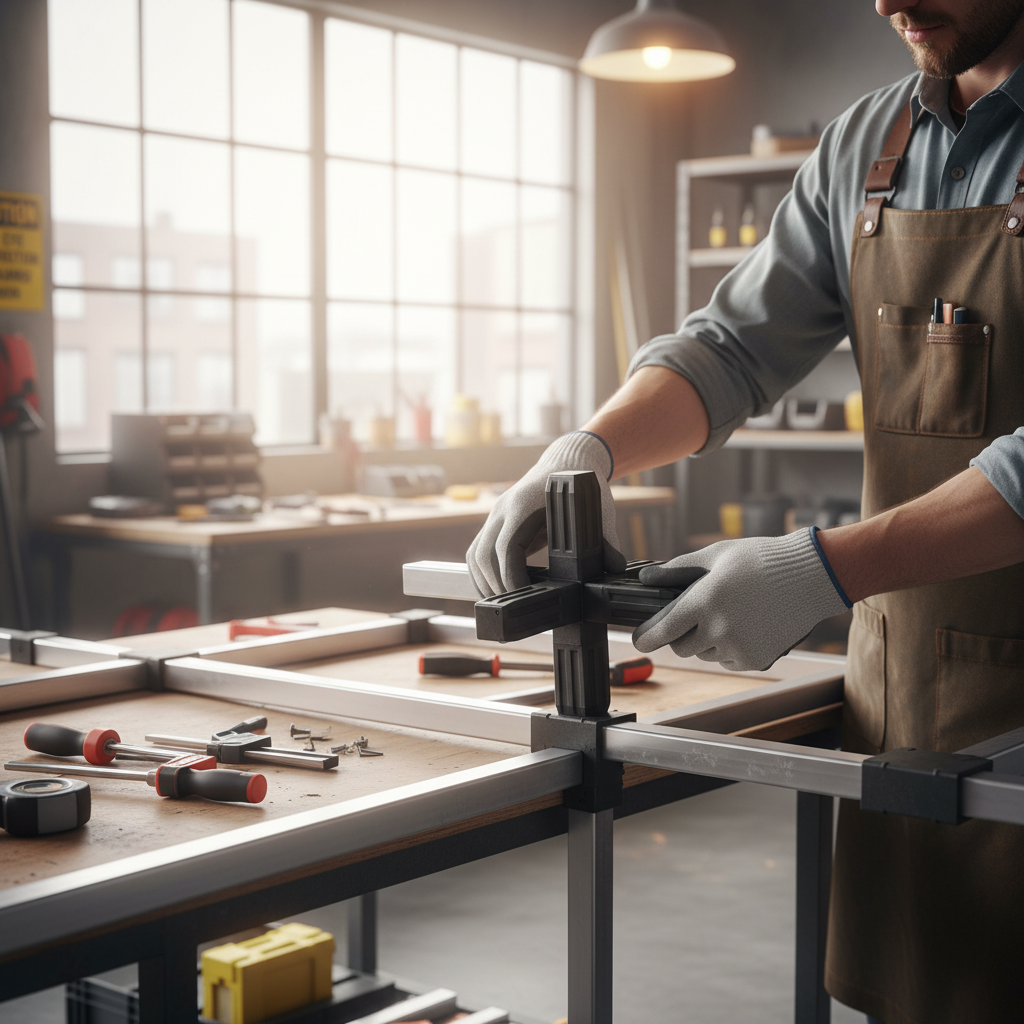 Constructed from durable plastic, this joint is engineered for robust connections, making it ideal for a variety of projects including shelving units, furniture, and frameworks. With a wide selection of different connection types available, you can customize your configurations to meet your specific needs.