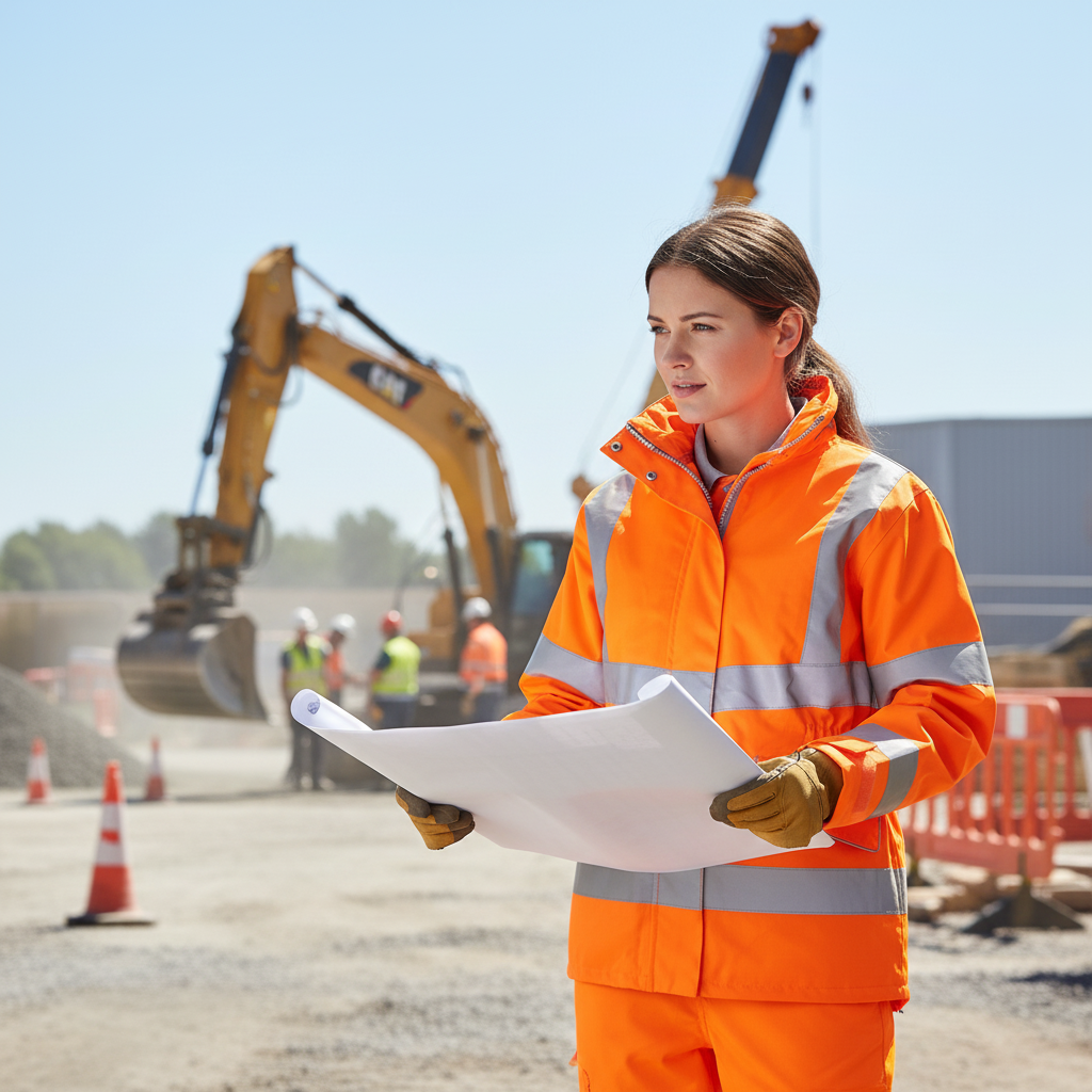 Stay safe and stylish with this High-Visibility Executive Jacket in vibrant orange. Designed for optimal comfort and visibility, this jacket features a tailored fit and a fully breathable grey mesh lining, ensuring you remain comfortable in various conditions.