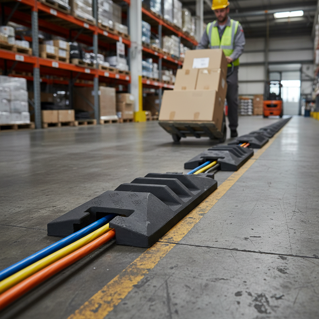 The Premium Large 3-Channel Cable Ramp is not just a protective solution; it also doubles as a speed bump, capable of withstanding the weight of vehicles. Its robust design makes it suitable for use in various environments including: