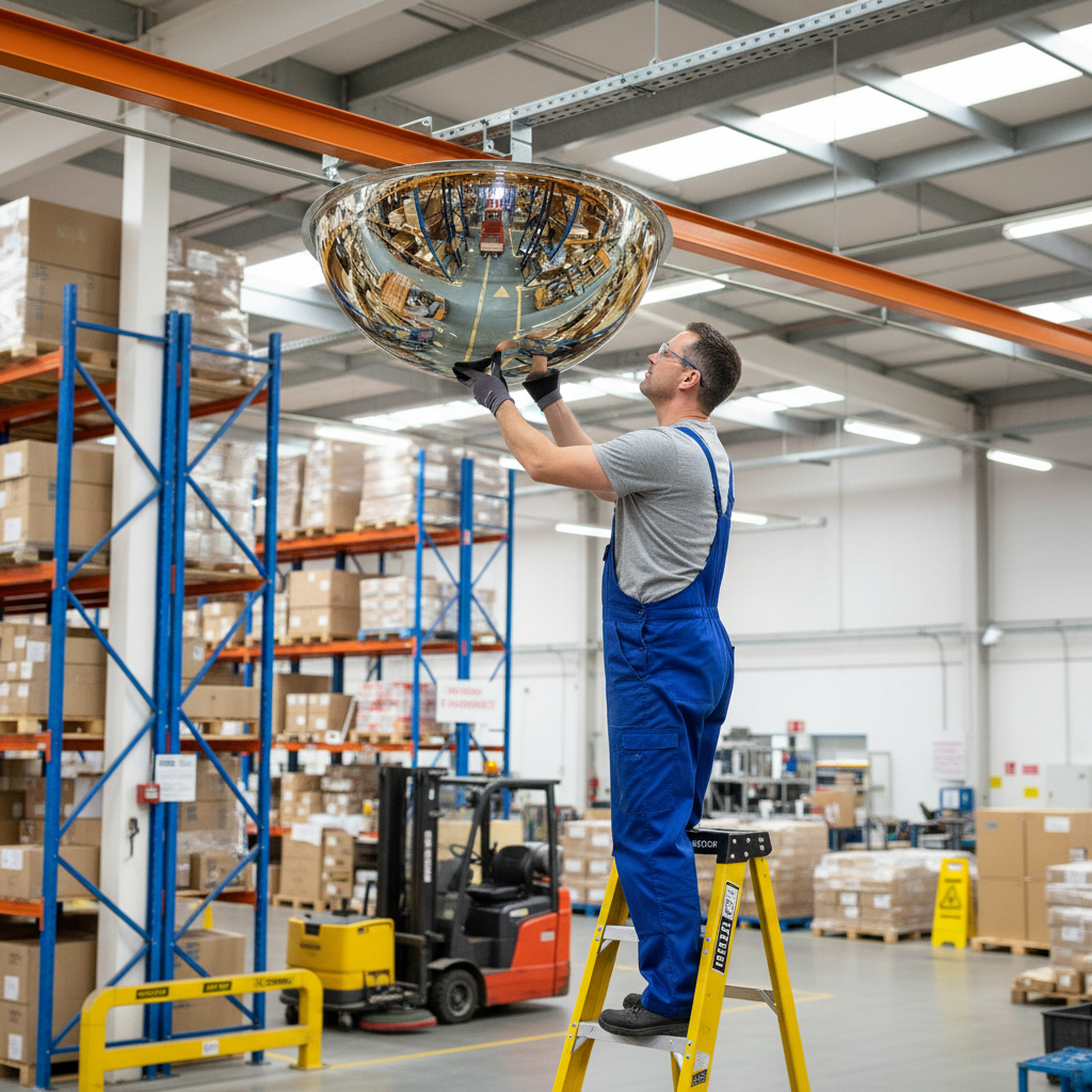 • Where can I use this mirror? - This mirror is designed for indoor use in areas like warehouses and supermarkets.