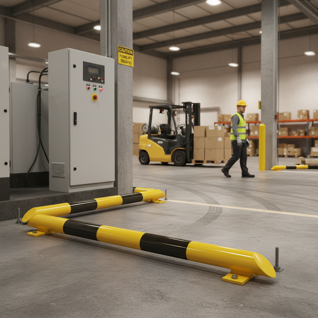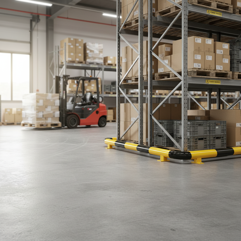 Protect your industrial plants and machinery effectively with our Heavy Duty Collision Protection Bars. Designed to shield against impacts from forklift trucks, roller containers, trolleys, and pallet trucks, these bars are essential for maintaining the safety of your shelving, cabinets, and wall-mounted equipment.