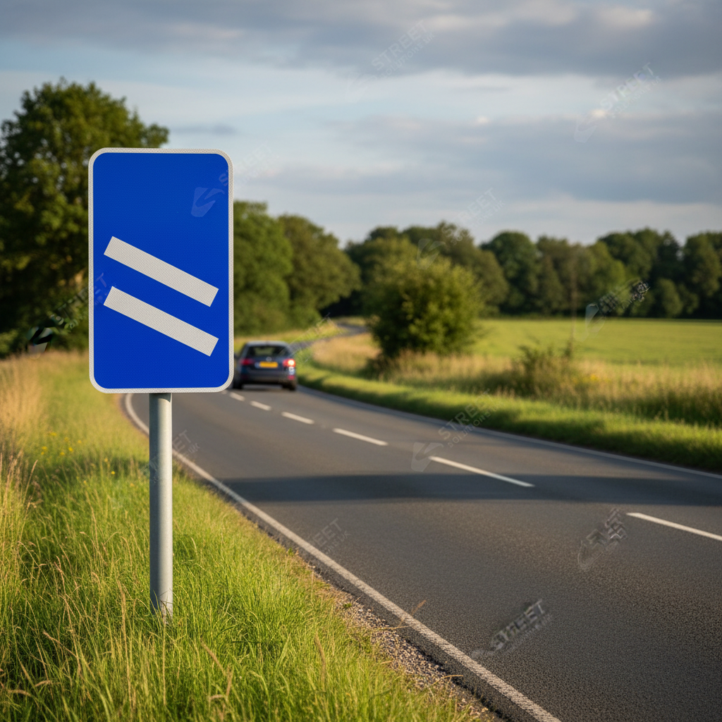 This Premium Count Down Marker Sign indicates that in 200 yards there is a roundabout or the next point at which traffic may exit the route. These signs are commonly seen on motorways and high-speed roads where drivers need ample notice to safely navigate upcoming exits or roundabouts.