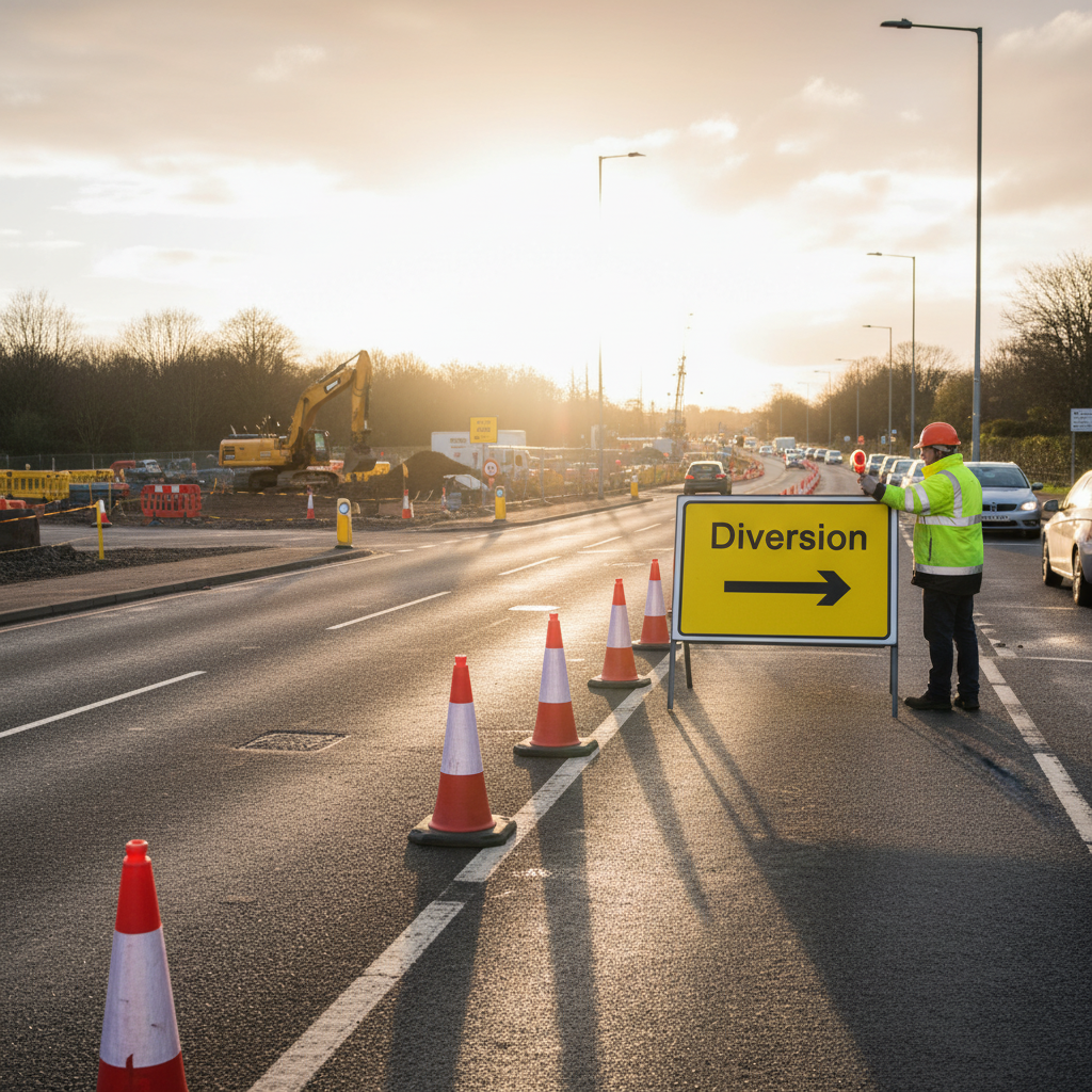 This Heavy Duty Diversion Arrow Right Sign is an essential metal road sign designed to indicate that the diverted route is to the right of the sign. It is commonly used on roads to ensure clear guidance for drivers, promoting safety and compliance with traffic regulations.