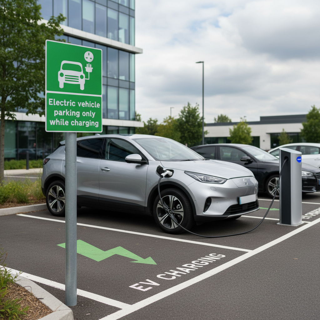 Ensure clear communication at your electric vehicle charging stations with this premium EV parking only while charging sign face. Designed for high visibility, this sign features a widely recognized symbol for car recharging, guiding drivers to appropriate charging locations.