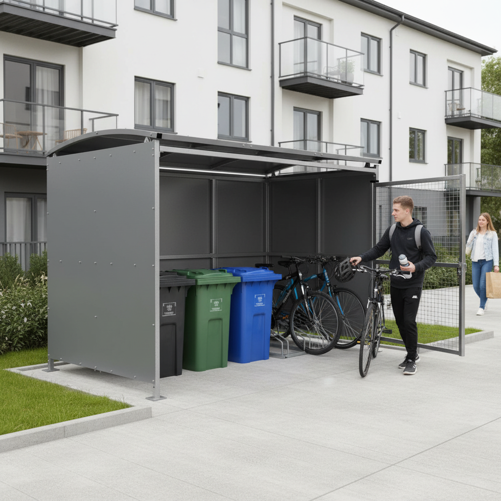 The Heavy Duty Bin/Cycle Shelter offers robust protection and versatility for both bin and bike storage. This free-standing shelter is built from durable galvanised mild steel, ensuring long-lasting performance in demanding environments.