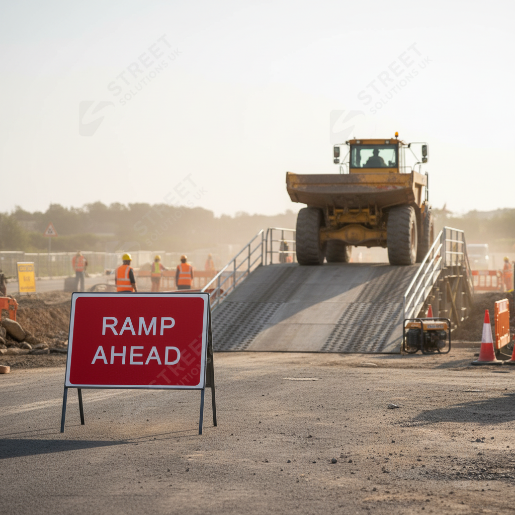 This Heavy Duty Ramp Ahead Sign is an essential safety feature for road users, indicating the presence of a ramp in the driving path ahead. Designed with high-visibility materials, this sign effectively alerts drivers and enhances safety in various driving conditions.