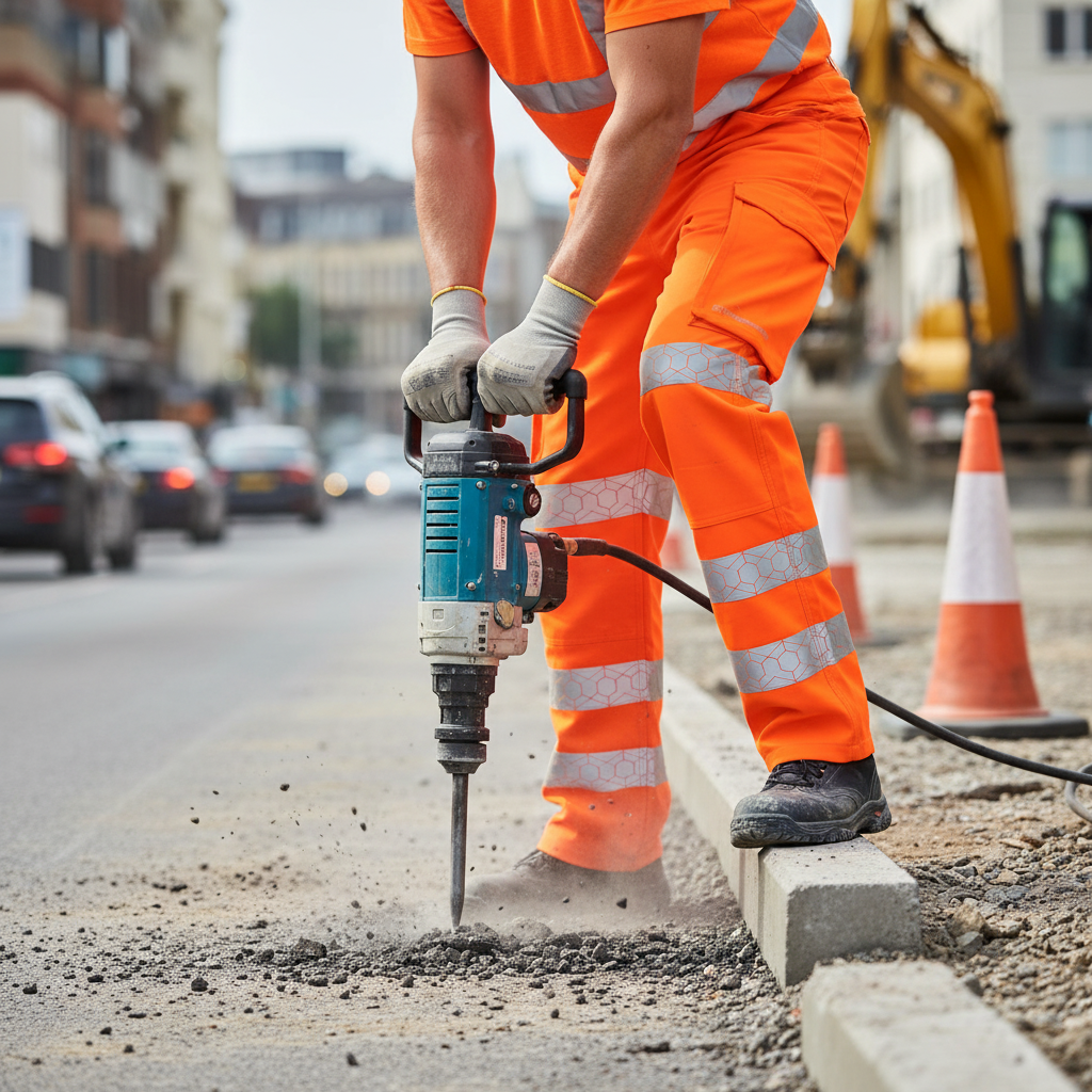 Our recyclable hi-vis trousers are available in sizes ranging from 28 to 46T.
