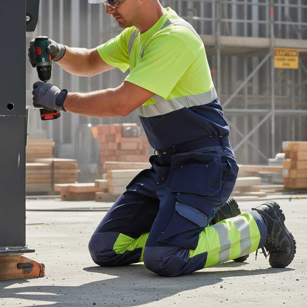 Discover the Premium Hi-Vis Two-Tone Trousers in Saturn Yellow/Navy Blue, designed to improve visibility and safety in various work environments. Made from a robust 80-20 polyester cotton blend, these trousers ensure comfort without compromising durability.