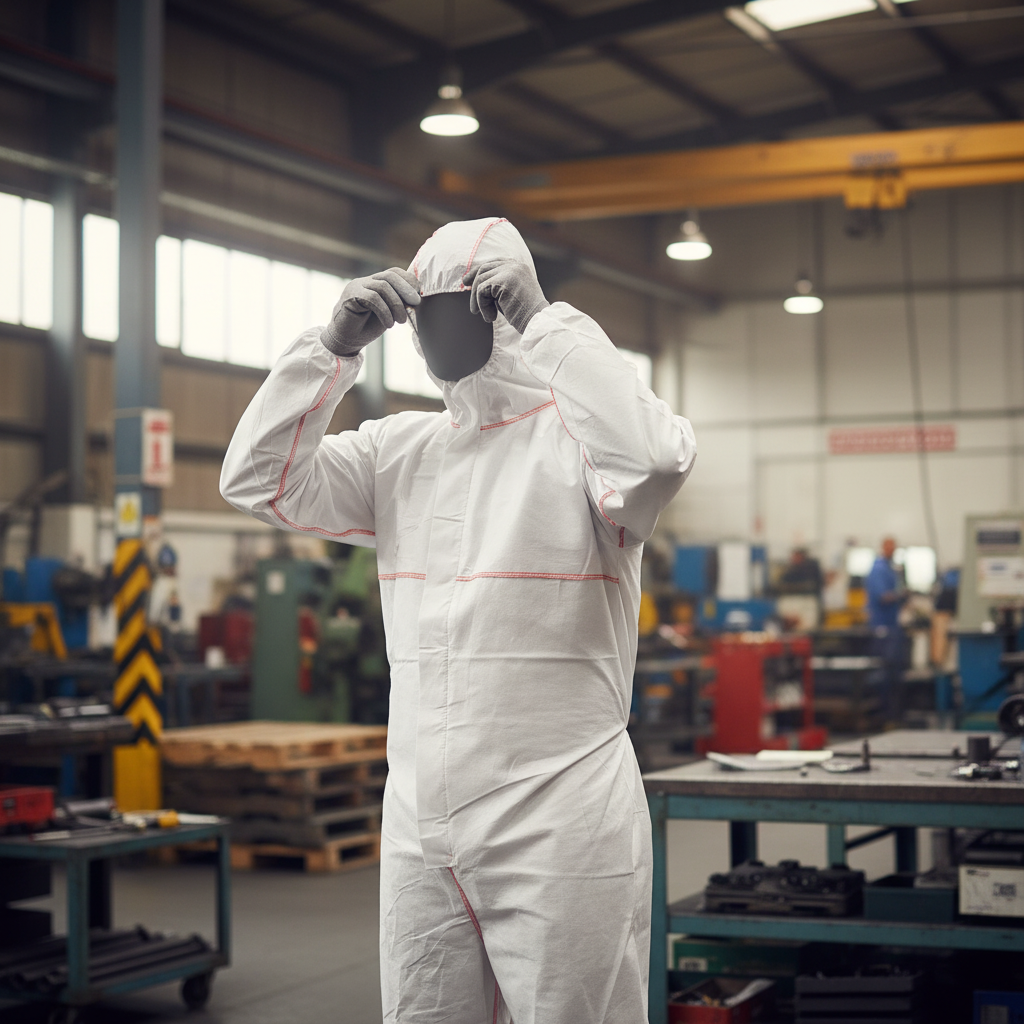 Introducing our Disposable High-Performance Coverall with 3 Piece Hood in White, an essential piece of protective wear designed for hazardous environments. This hooded coverall features elasticated face, wrist, and ankles, ensuring a snug fit while providing reliable protection against particles and liquid splash.