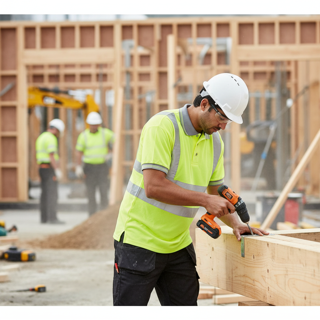 Introducing our Short Sleeve High-Visibility Polo Shirt in vibrant yellow, engineered for maximum visibility and comfort. Crafted from premium 100% polyester Bird Eye fabric, this shirt offers durability and breathability, making it ideal for long hours on the job. The three-button placket and grey trim detailing on the collar and cuffs add a touch of sophistication to its functional design.