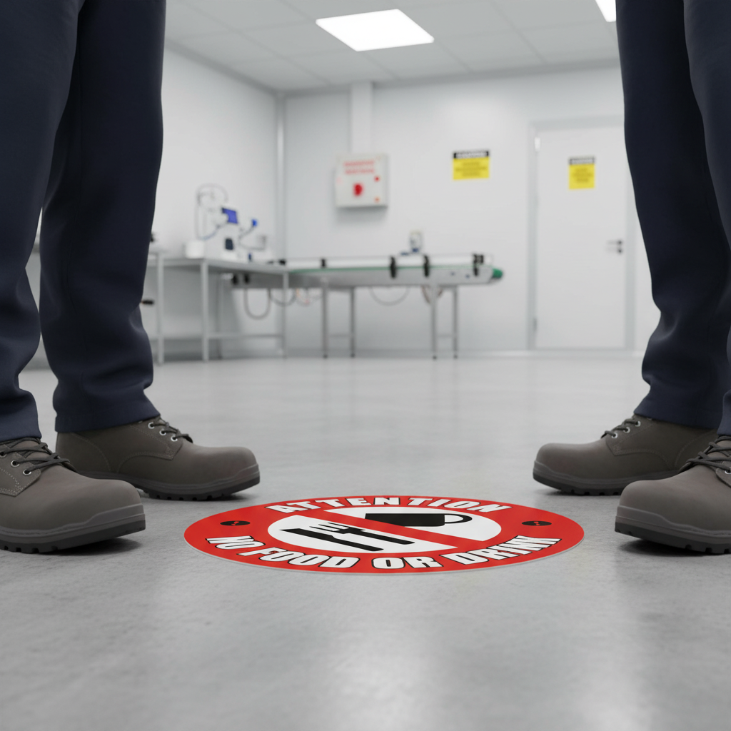 Promote a safe environment in your workplace with our Premium Attention No Food Or Drink Floor Sign. Made from high-quality, slip-resistant vinyl, these signs are designed to withstand the demands of high-traffic areas while providing clear safety messages.