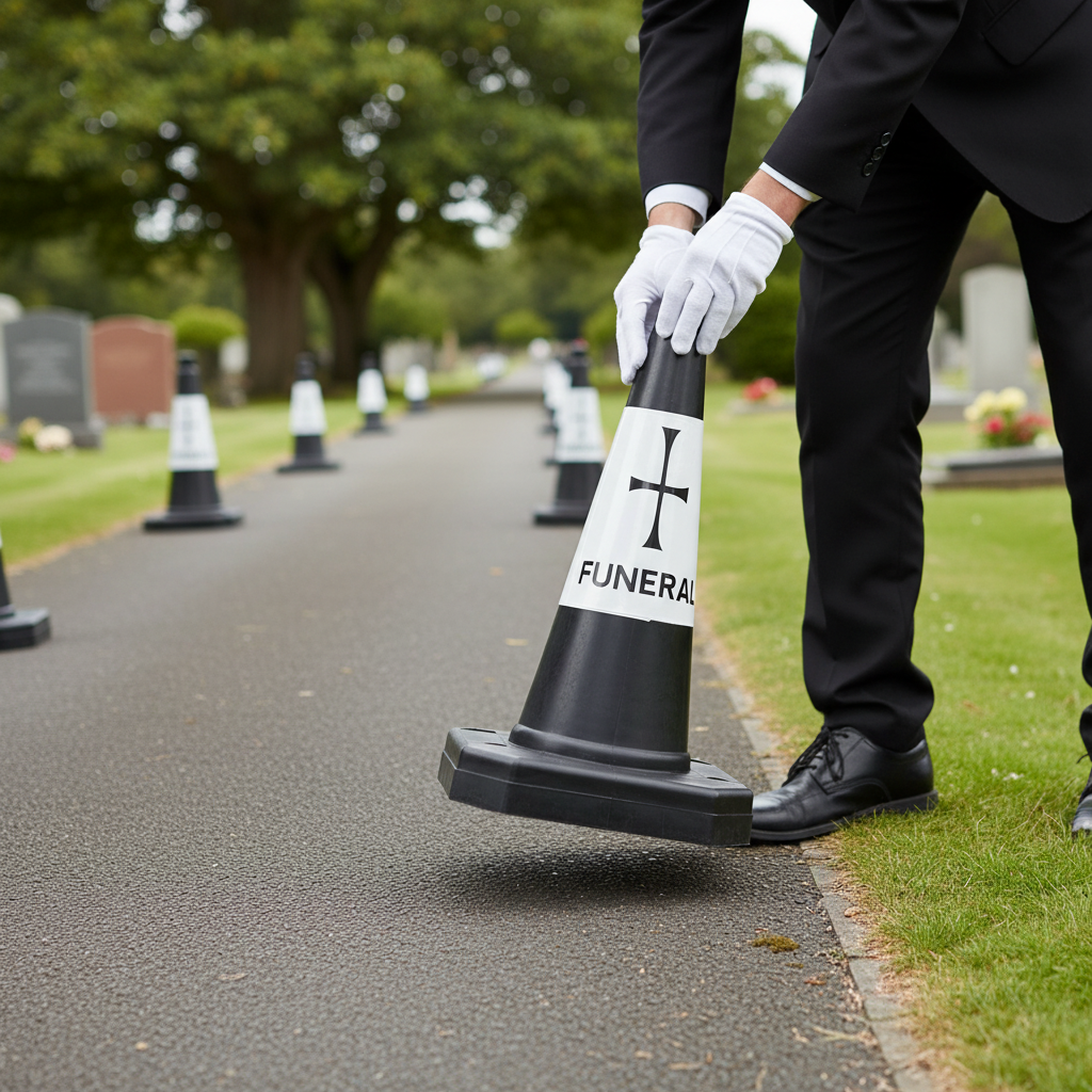 Our 500mm funeral cones are specifically designed to assist with the flow of traffic and parking areas during funeral services. Their 1-piece design ensures durability and ease of use. The high-quality construction and thoughtful design make these cones a trusted choice for managing traffic effectively.