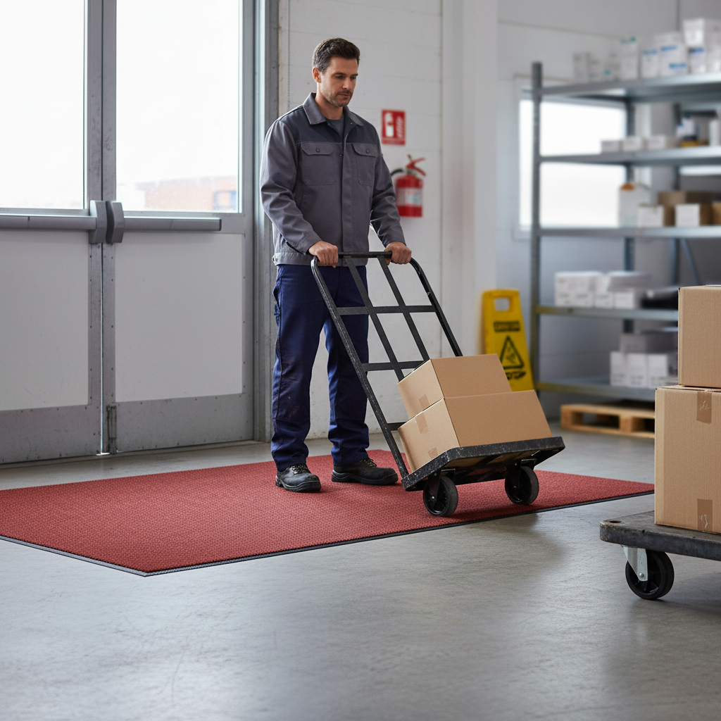 This Premium 9mm Mat in Red is designed for durability and effective dirt trapping. Made from nylon twist fibers with nitrile rubber, it provides high-performance dirt absorption, making it ideal for both residential and commercial settings.