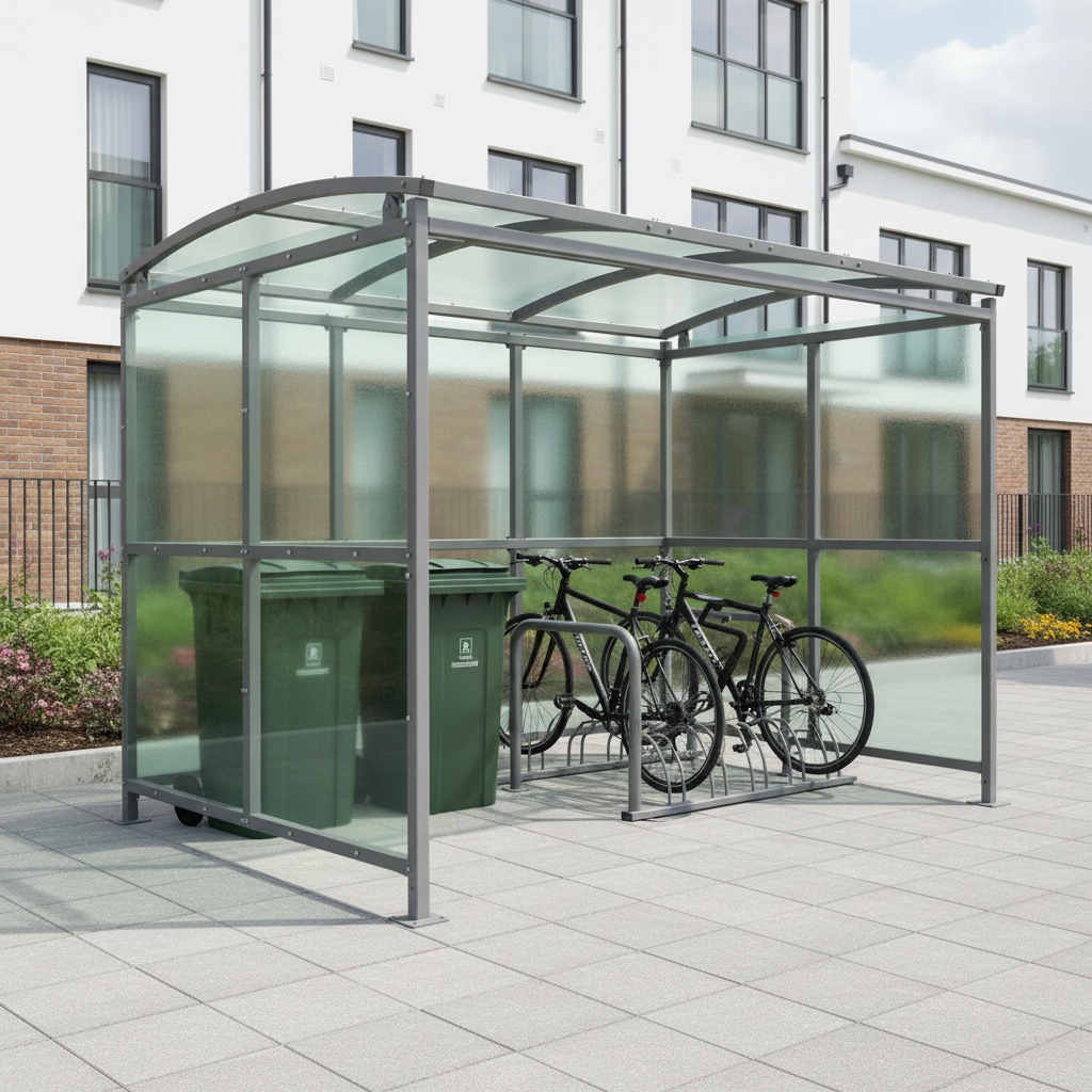 Premium Bin/Cycle Shelter with Clear PETG Cladding - 1m to 5m