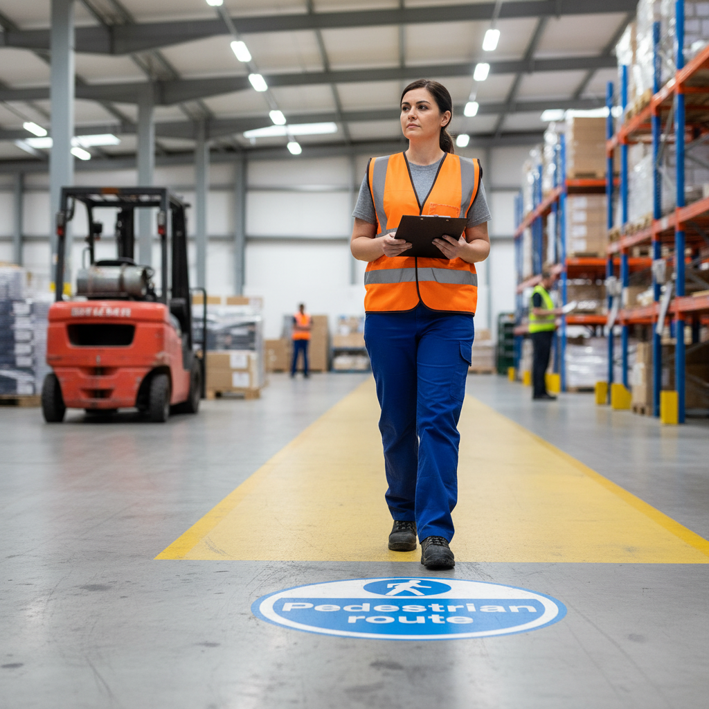 Their self-adhesive backing allows for quick and easy application on floors, walls, and any sealed surface, making them a versatile choice for warehouses, factories, distribution centers, construction sites, and shopping centers.